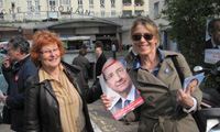En ce beau weekend-end d’avril, malgré la fraicheur matinale, le marché Saint-Romain à Sèvres était le champ d’une bataille bucolique et très pacifique entre les “tracteurs” des principaux candidats, partisans de Sarkozy, Hollande, Mélenchon, Bayrou et Eva Joly. Retrouvailles courtoises entre gens connus, une cohabitation pacifique juste en face du commissariat, qui n’empêchait pas une concurrence impitoyable pour vendre chacun son tract, son programme, son invitation au meeting de dimanche, à la Concorde ou à Vincennes… Visiblement les plus nombreux, les partisans de Hollande n’avaient pas de mal à occuper le terrain jusqu’au cœur du marché, plaisantant avec les commerçants.